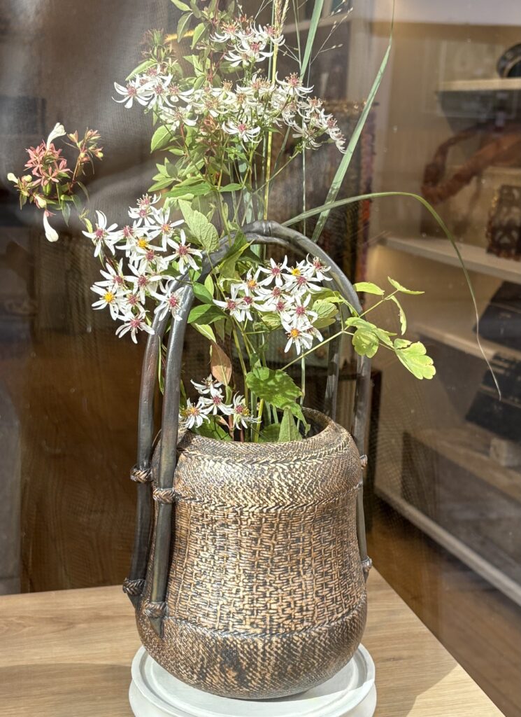 Vase en céramique inspiré par les paniers tressés en bambous Hanakago